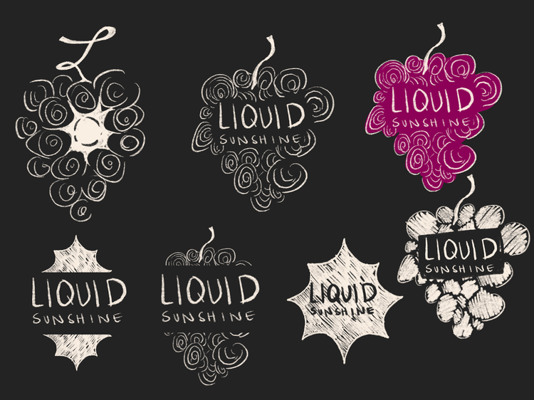 There were two main challenges with this project. The first with the logo design and meeting the clients criteria from their initial design concept (see image below). My client requested to keep the “L” for the word Liquid as a part of the stem and that a Sunshine element be incorporated as a visual element in the grapes below.