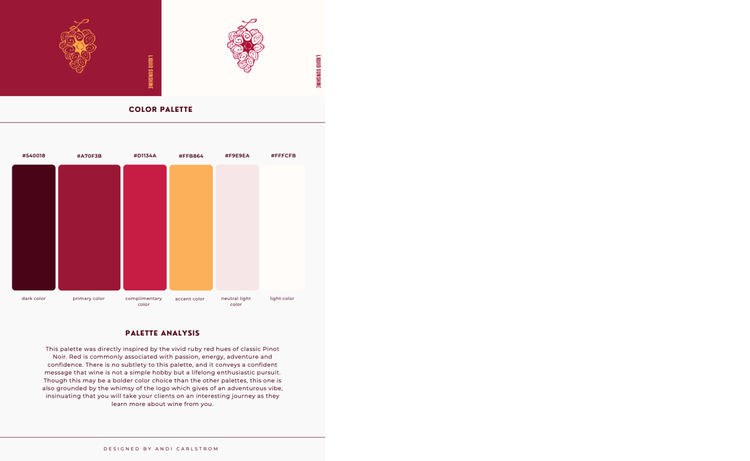 My client liked the second and fourth palettes but wanted to see a palette that was closer to the color of a classic Pinot Noir.