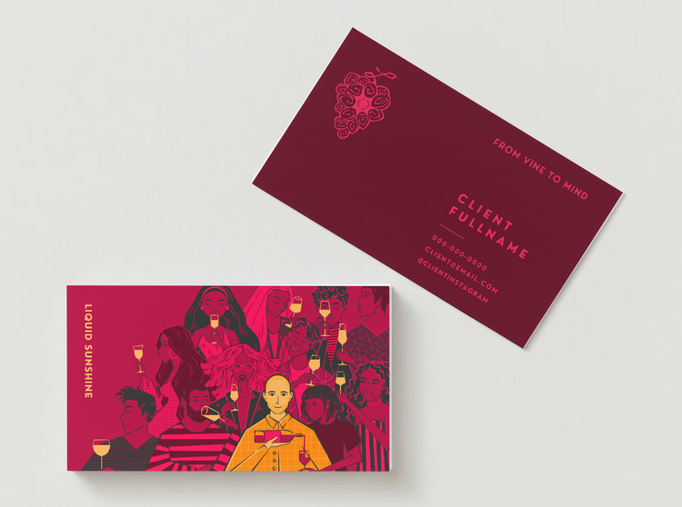 Liquid Sunshine is a wine pairing and event hosting passion project out of Rochester, NY. As a WSET Level 3 certified professional my client needed early stage branded materials for his company that included logo design, brand color palette and business cards.